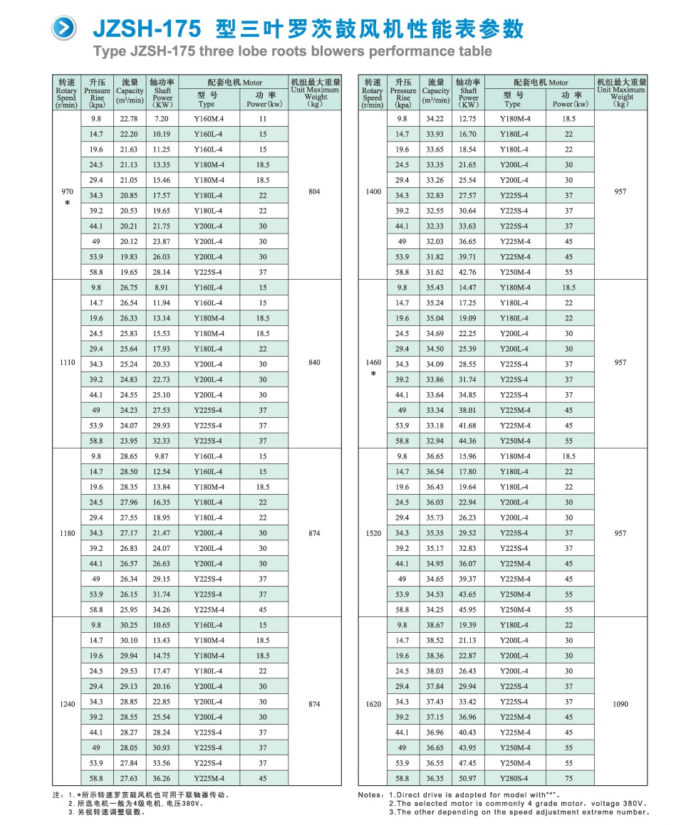 2.JZSH系列風(fēng)機(jī)標(biāo)準(zhǔn)附屬品:電機(jī)、進(jìn)口消音器、出口消音器,風(fēng)機(jī)底座、彈性接頭、安全閥、逆止閥、壓力表、地腳螺栓、風(fēng)口連接螺絲,風(fēng)機(jī)帶輪、電機(jī)帶輪、V型三角帶、皮帶罩、羅茨風(fēng)機(jī)專用油(已注好)。