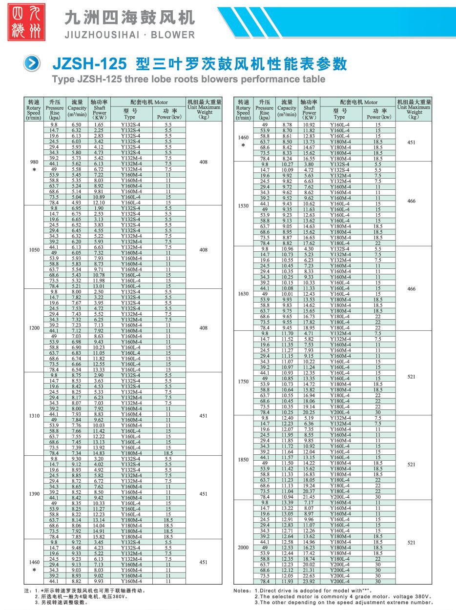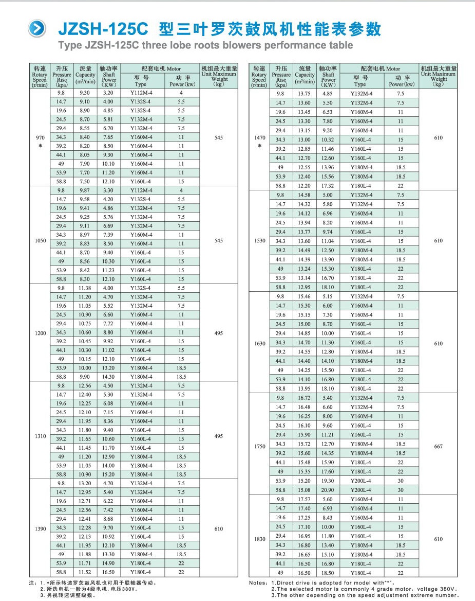 2.JZSH系列風(fēng)機標(biāo)準(zhǔn)附屬品:電機、進(jìn)口消音器、出口消音器,風(fēng)機底座、彈性接頭、安全閥、逆止閥、壓力表、地腳螺栓、風(fēng)口連接螺絲,風(fēng)機帶輪、電機帶輪、V型三角帶、皮帶罩、羅茨風(fēng)機專用油(已注好)。
